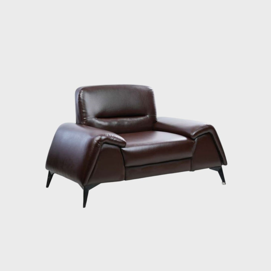 Artificial leather arm chair on metal legs.